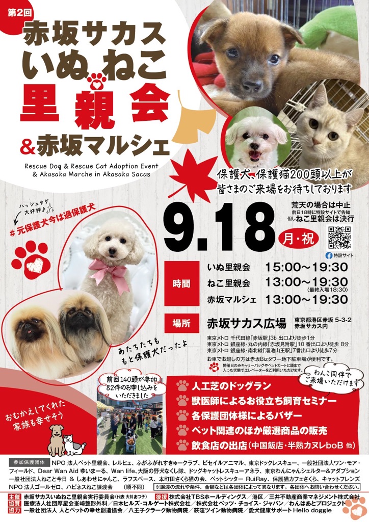 いよいよ来週の月曜日祭日に赤坂サカスの譲渡会が開催されます。