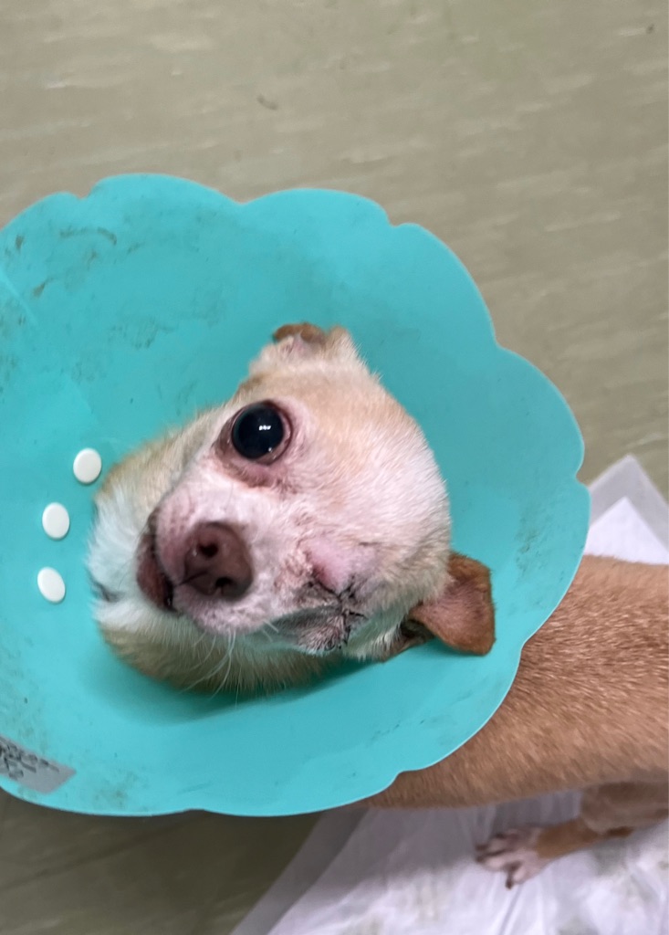 下は 緑内障のため片目を摘出したうるるちゃんです、この後里親希望者様がいらっしゃるので