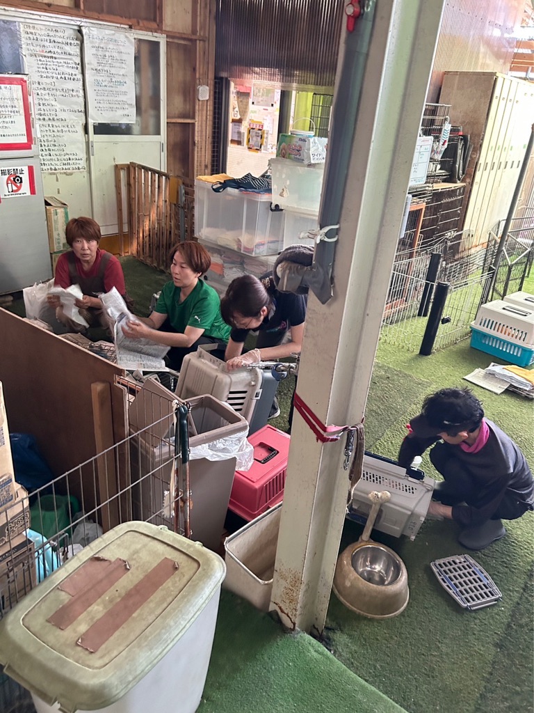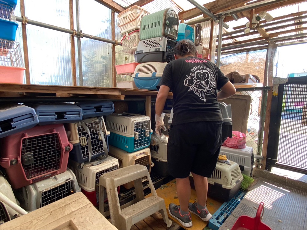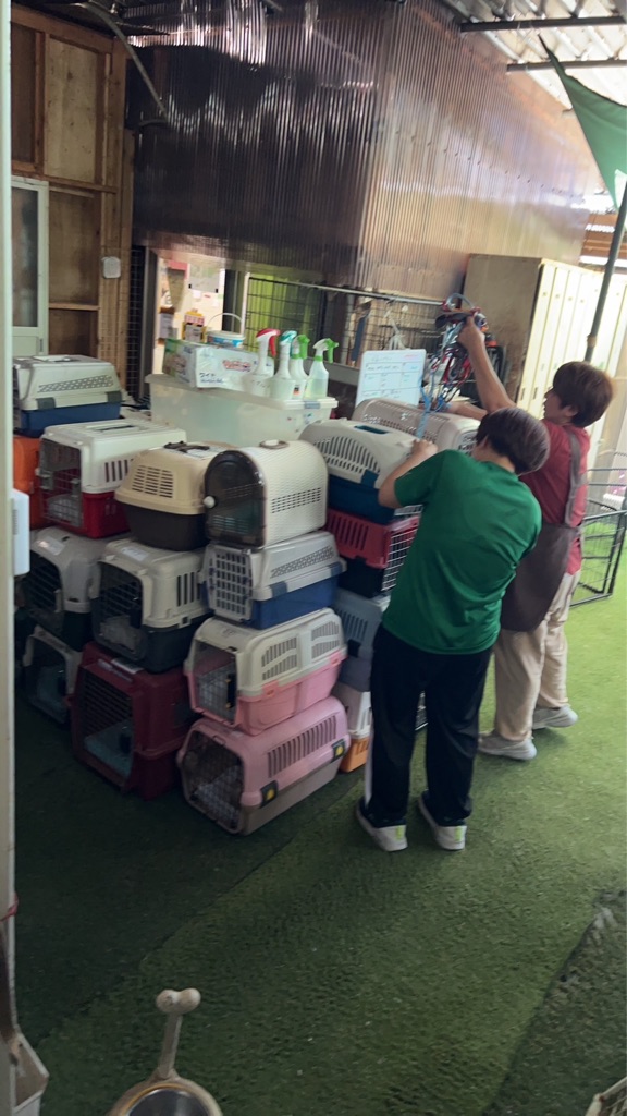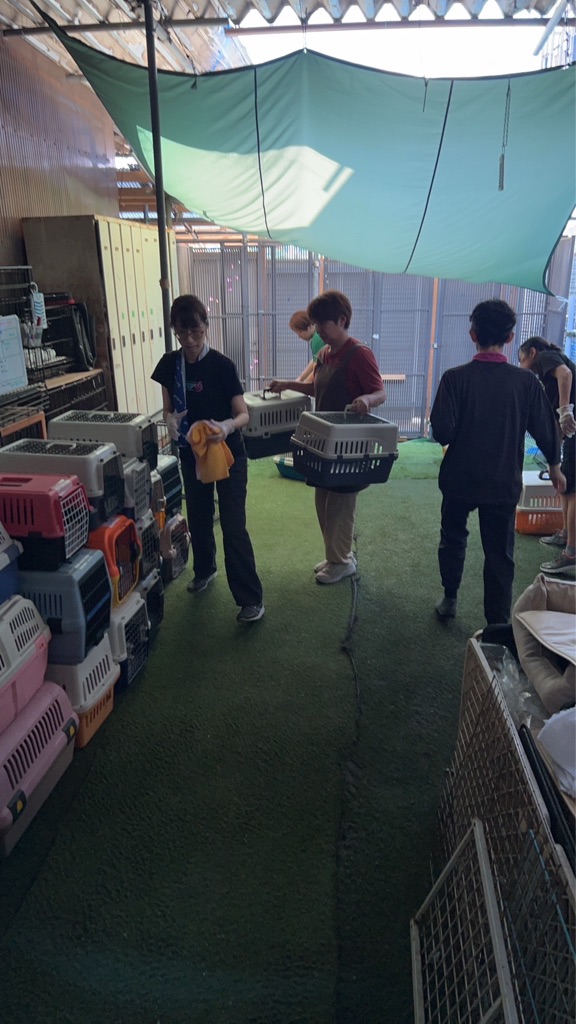 スタッフさん達はこの暑い中ケージの用意に追われています、