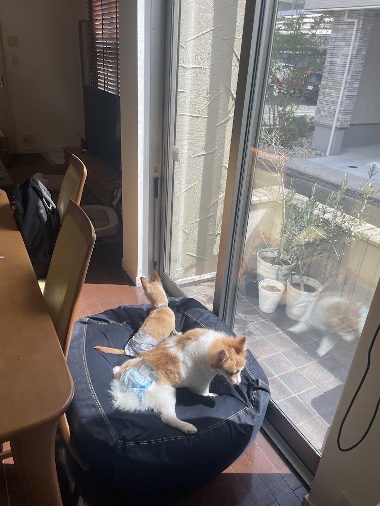 初めて家庭に入ることで 今まで居た犬仲間が居なくなり不安なのだと思います。