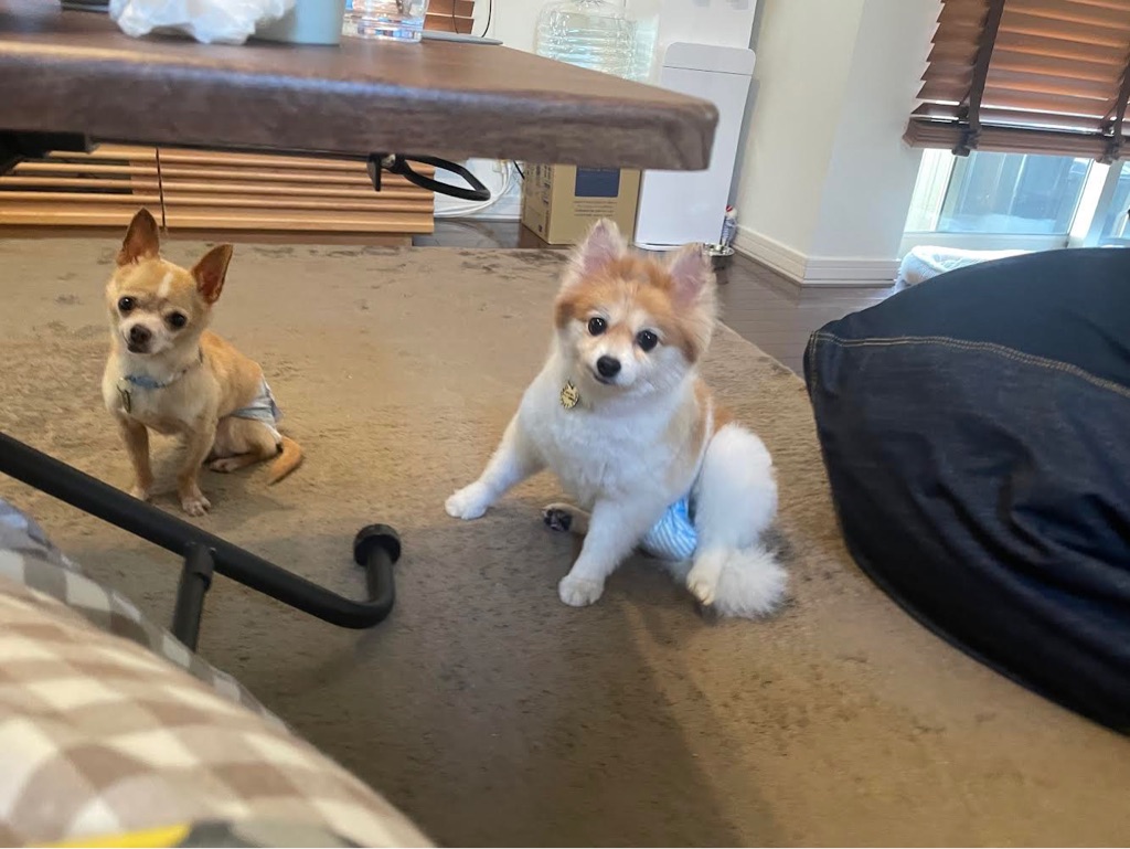 チートス君は マーキングをするのでオムツをつけて居ます、