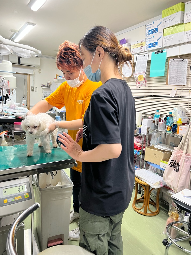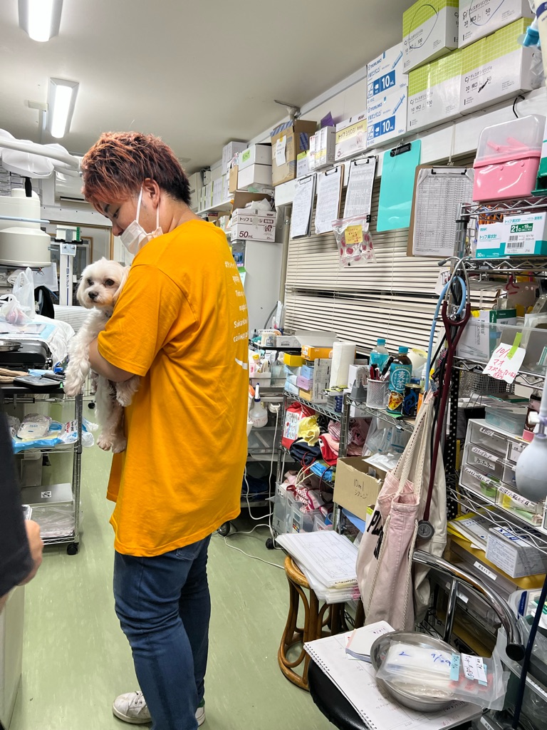クリニックに犬達を届けてお手伝いをして頂きました。