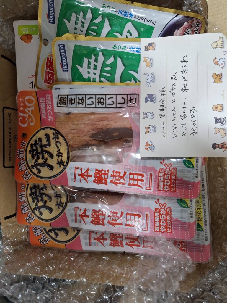 そして猫ちゃん達に美味しいパウチも頂き有り難うございました。