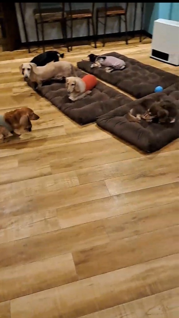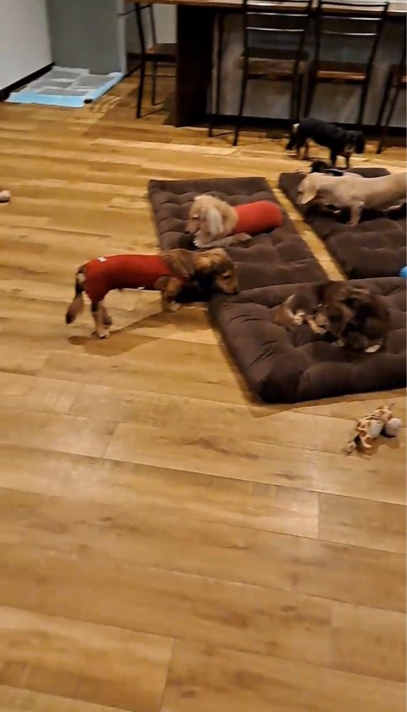ダックス好きのご家族に貰われGO君とマカロンちゃん、ご覧の通り 皆んなと馴染んで幸せを満喫しています❤️👌❤️