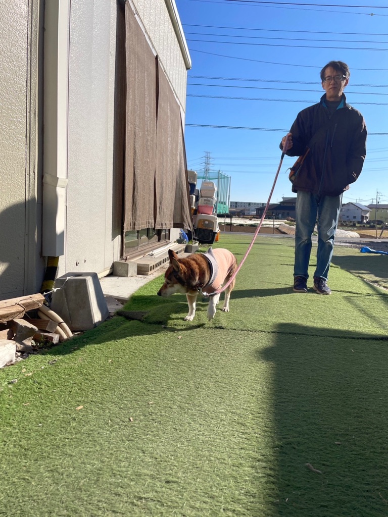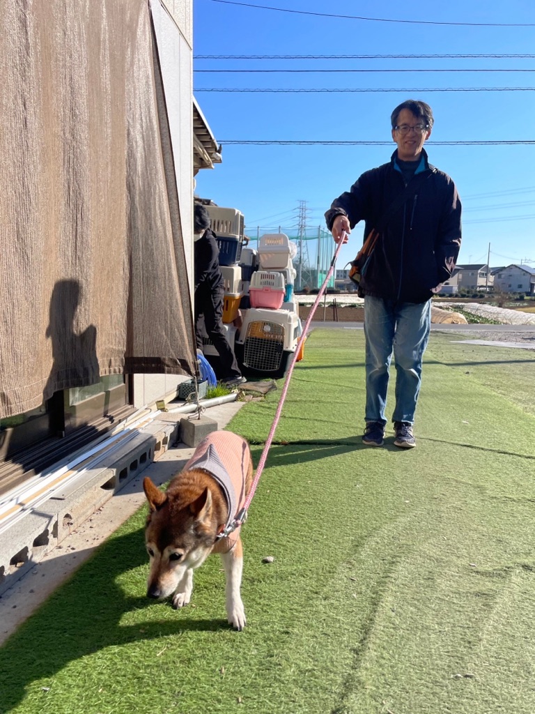 お兄さんと散歩して貰っている みーやちゃん、