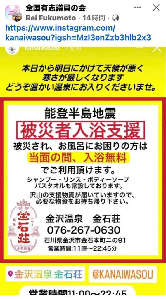 下は能登半島地震の被災者の方に