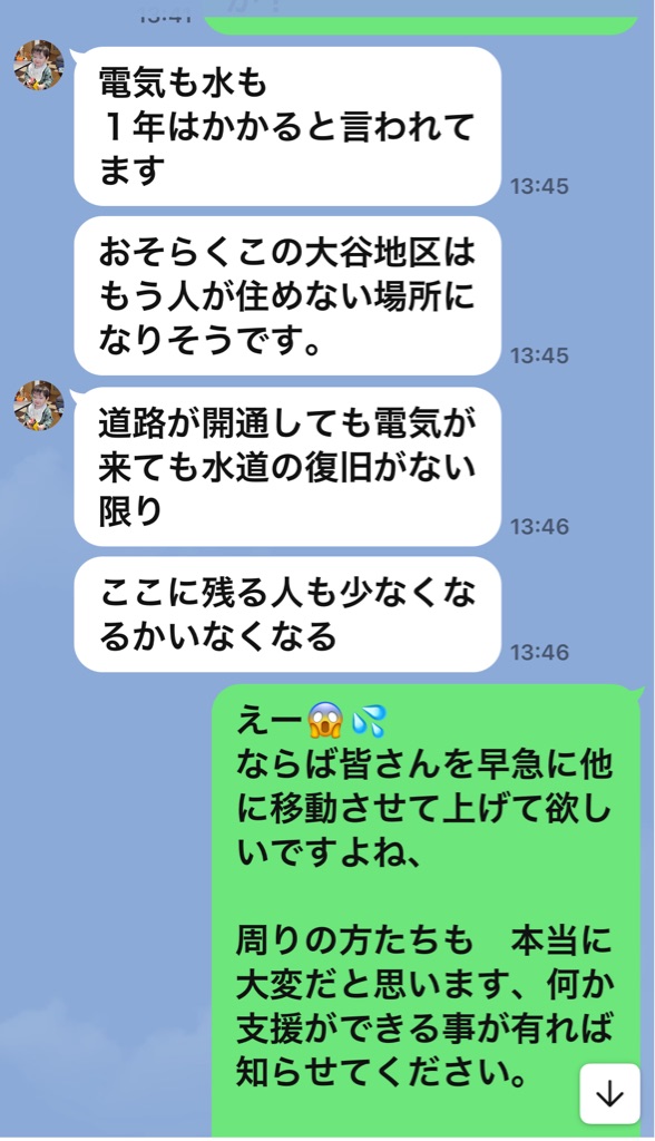 珠洲市の方からLINEで連絡が来ました、