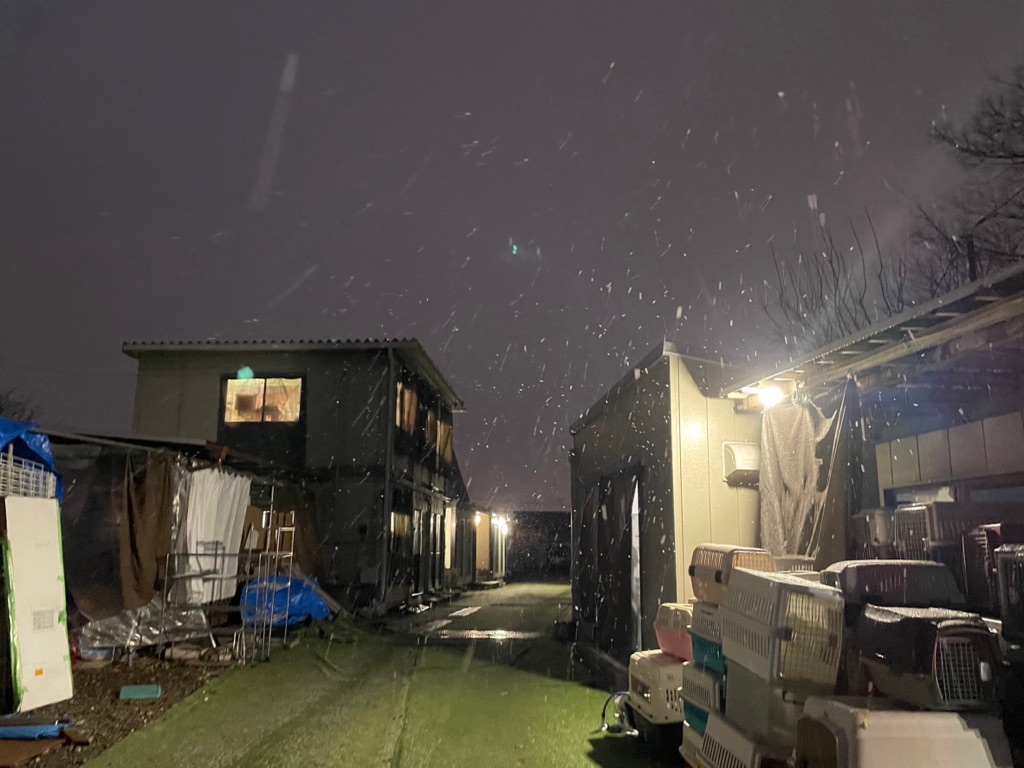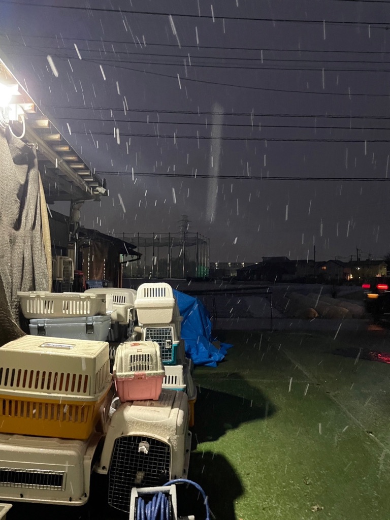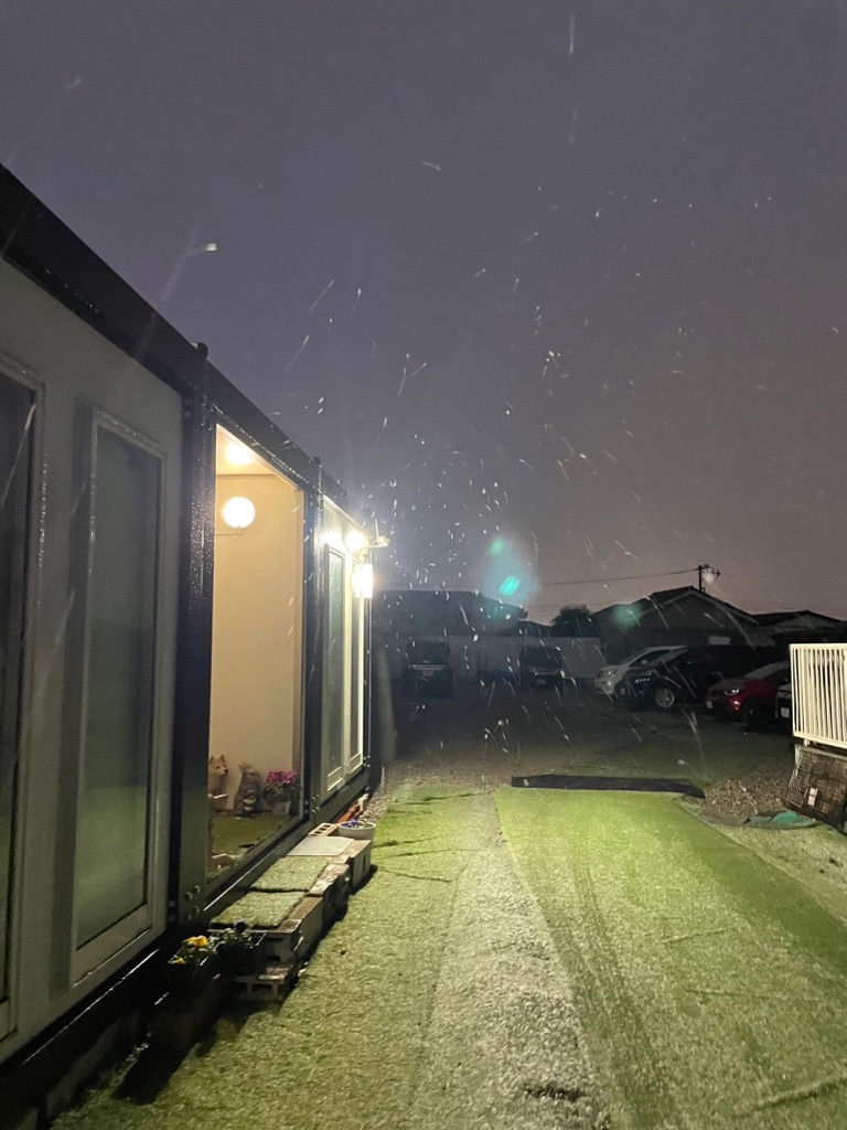 夕方、シェルターに雪❄️が降って来ました、😱