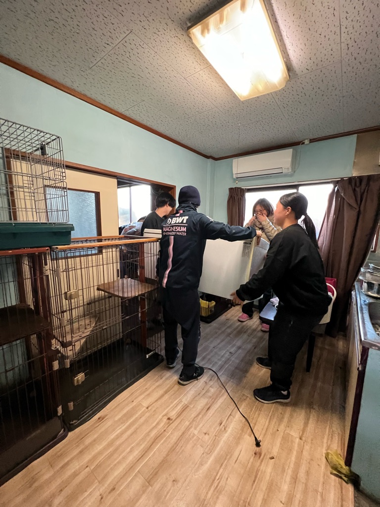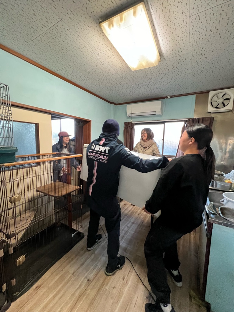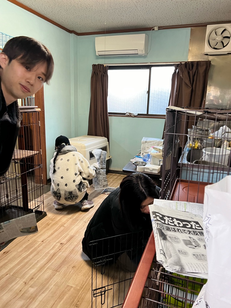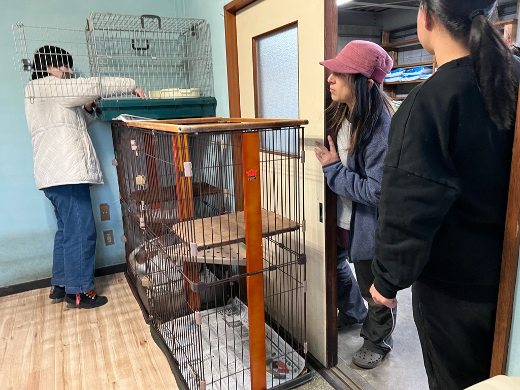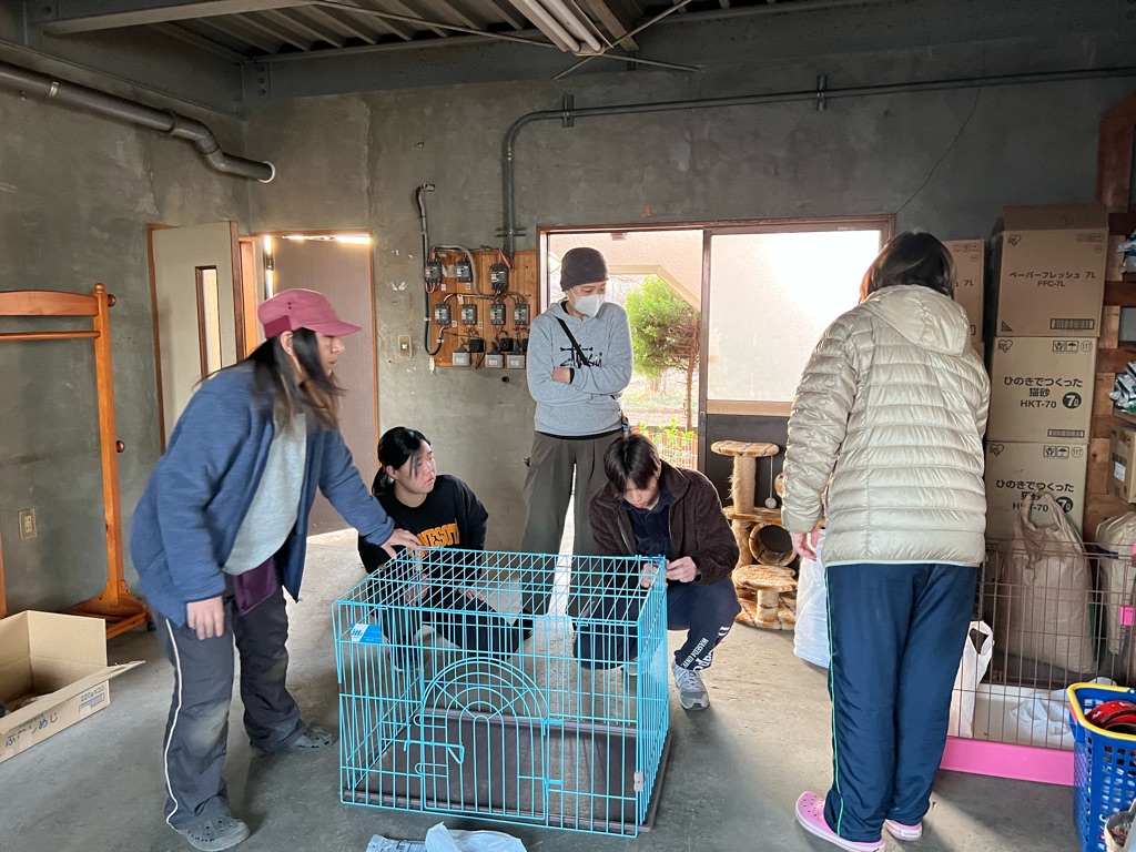 ケージを運び込んでいます、