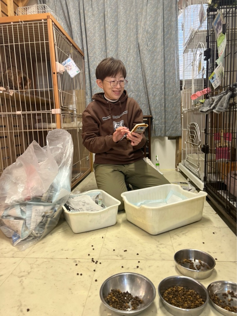外猫警備隊だったマスクは 引退して猫部屋で