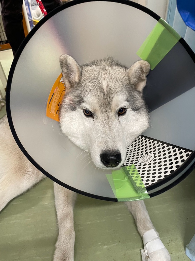 治療のため暫くはカラーを付けなくてはなりません、💦