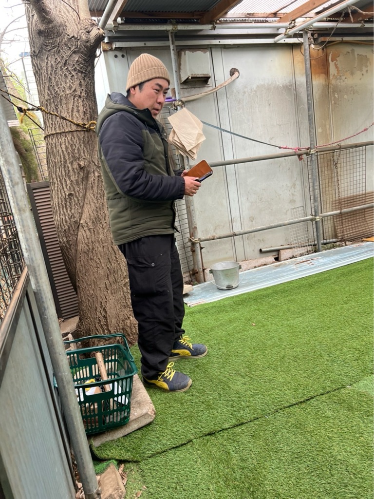 昨日になってしまいましたが、春太のパパさんが中庭の人工芝を敷き替えてくれました、👌💓👌