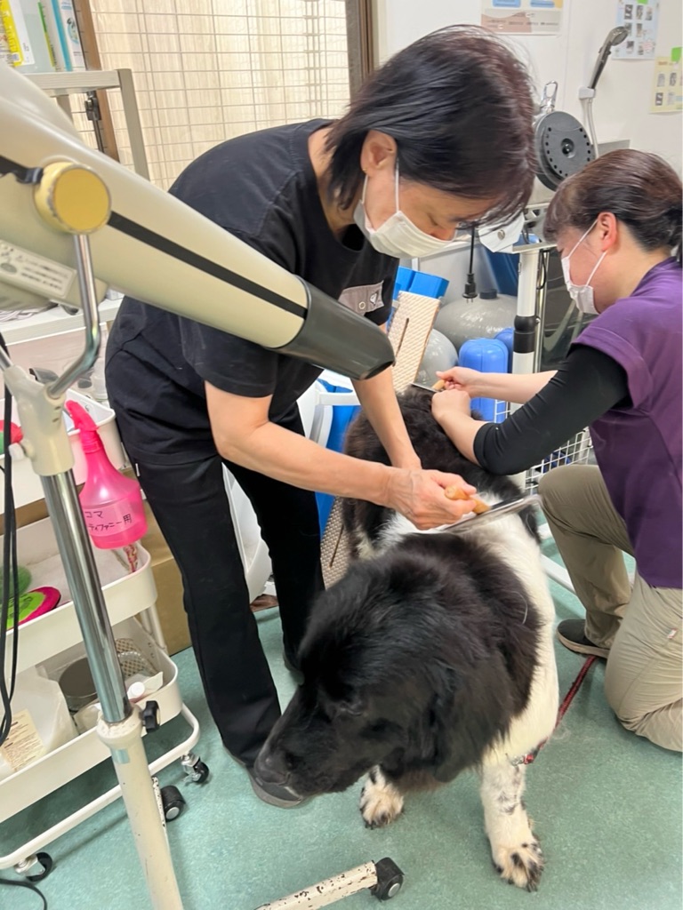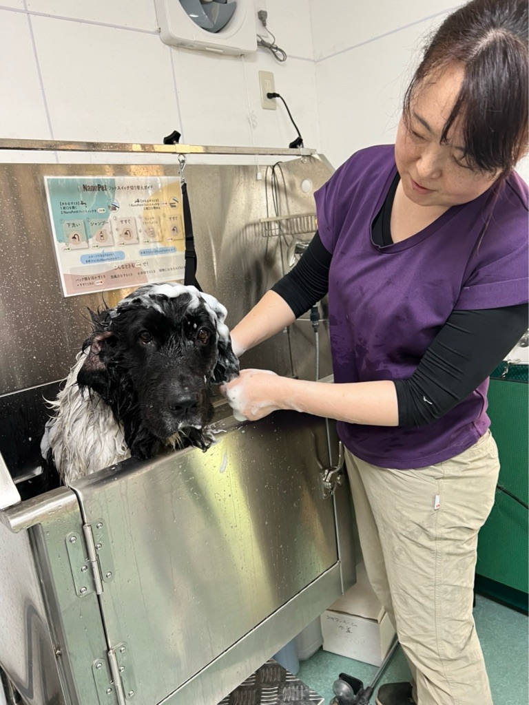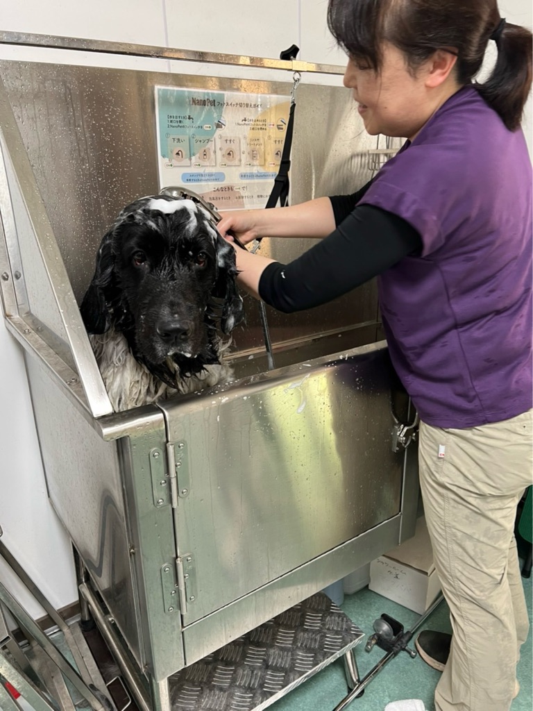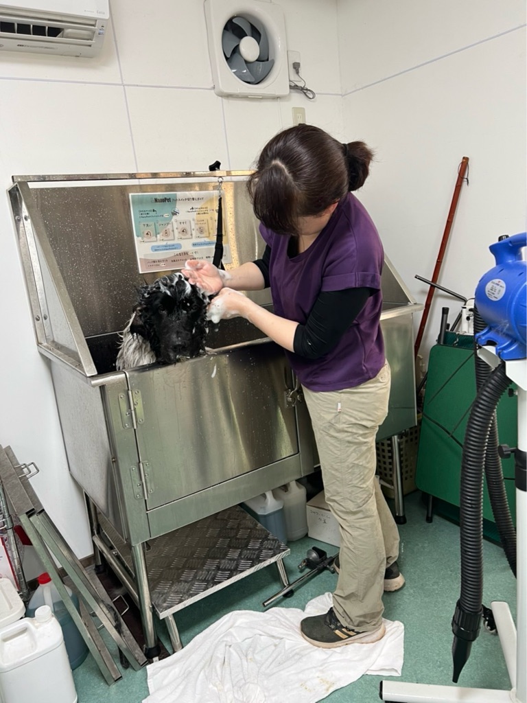 トリミングルームでは明日お見合いのクィーンちゃんのシャンプーが終わりました😆👌💓