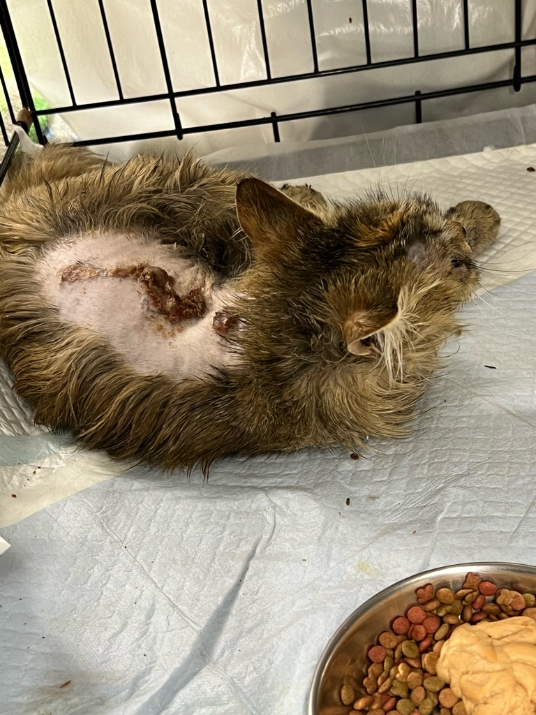 酷い傷が有ります、化膿はだいぶ無くなりましたが痛々しいです。