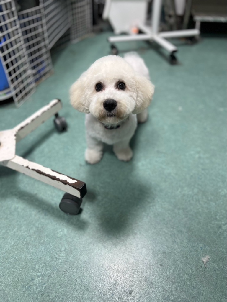 下のセナくんはビションフリーゼの一歳、