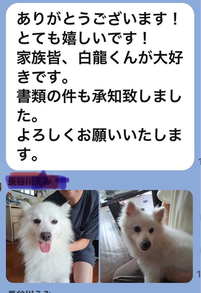 正式譲渡のご連絡がありました。