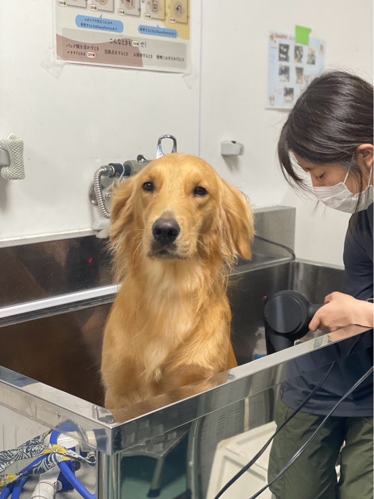 ゴールデンのシャンプーは一人では無理なので ヘルパーさんがつきます😅👌💓