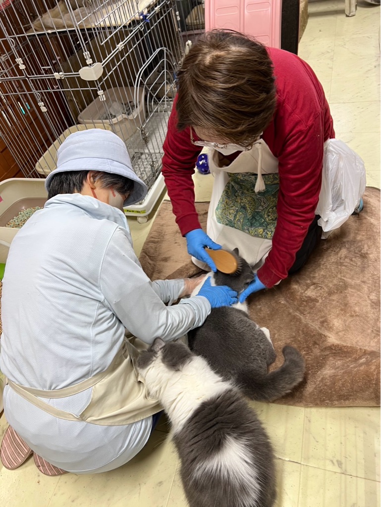 2階の猫部屋の猫ちゃん達のブラッシングと耳掃除、爪切りなど いつも有り難うございます😽💕