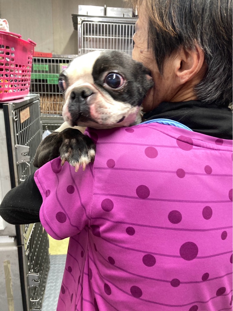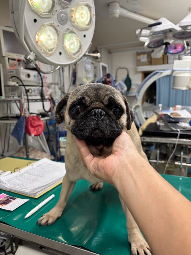 下のパグちゃんは3歳くらいの女の子、ブリーダーの廃業による放棄です。