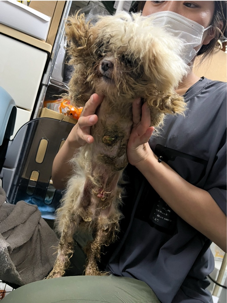 下の画像を改めて見て頂きたいと思います。レスキュー時の悲惨極まりない姿、今でも忘れられないこの姿、、、胸が痛みます。