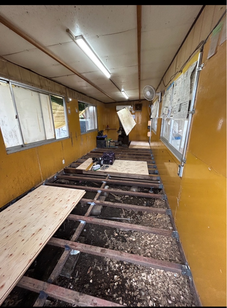 下は改装工事中の大型犬の部屋、
