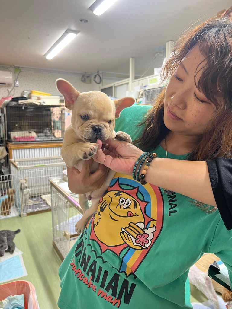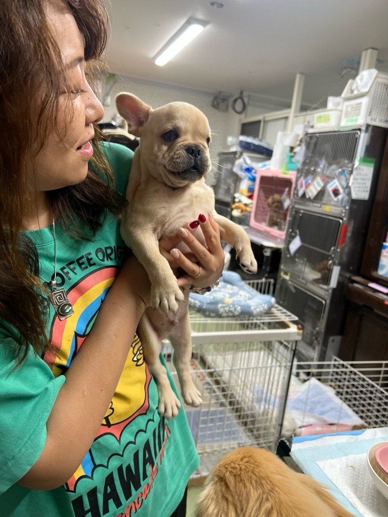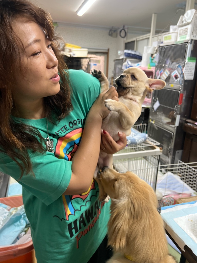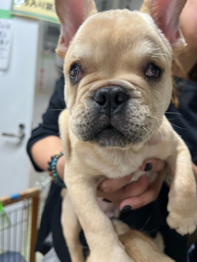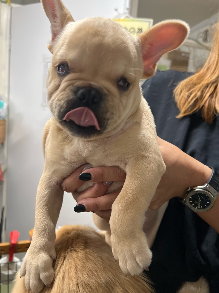 下のフレンチブルちゃんは目が悪いです。まだ子犬なのでかまってちゃんです。