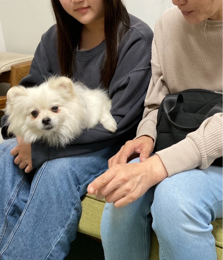 お姉さんが サマンサのテーブル代わりになってくれています。💓