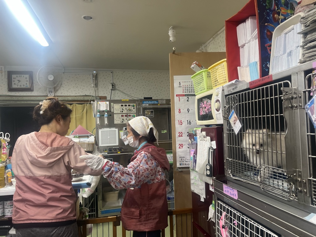 下は入院室の子供達、老犬や病気で介護の必要な子はスタッフさん達が毎食シリンジで食べさせたり