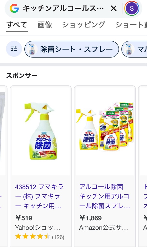 キッチンアルコール除菌スプレーが不足しています、