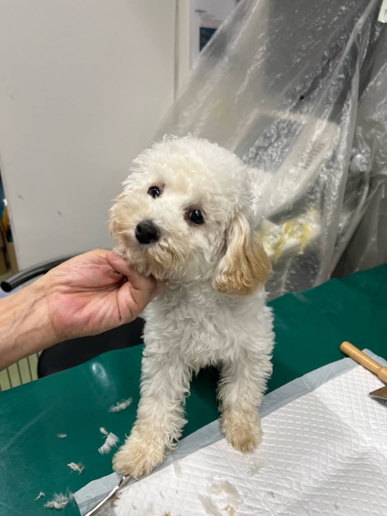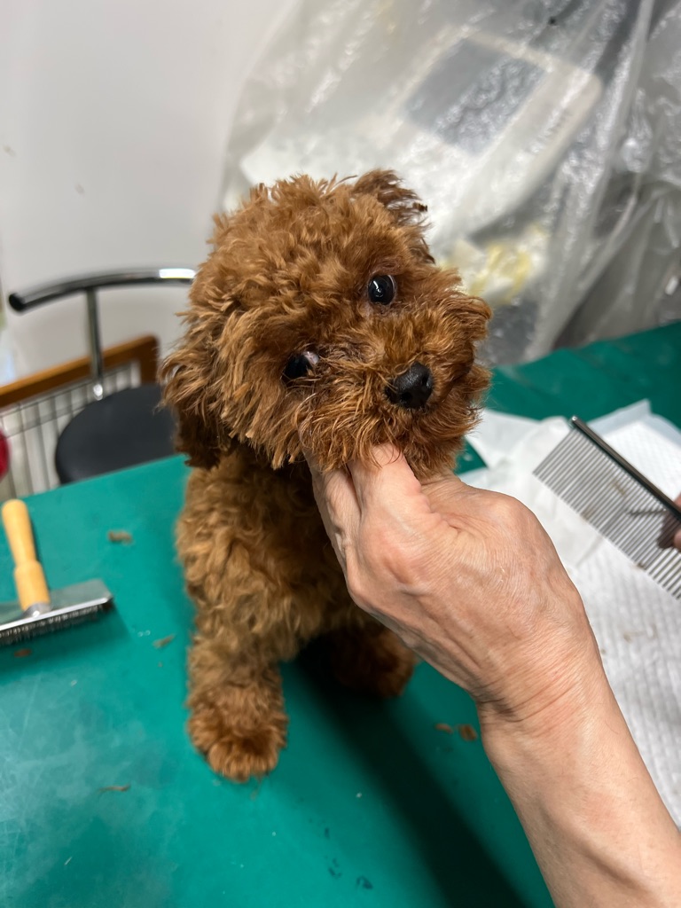 クリニックの子は 足の手術後の子も多い為シャンプーがあまり出来ません、なので顔周りだけでもやりましょうと2匹目に突入💦