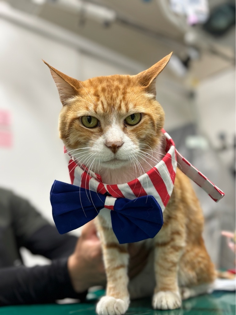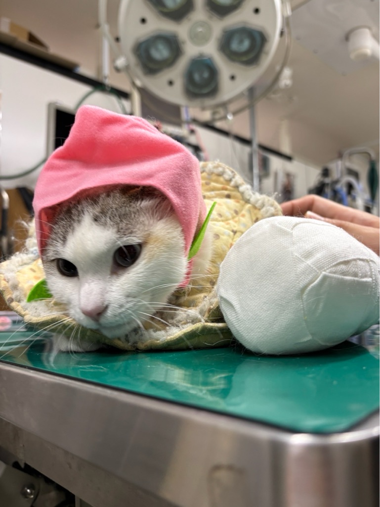 下は交通事故で手を骨折したマミーちゃん、毎日包帯を変えています。