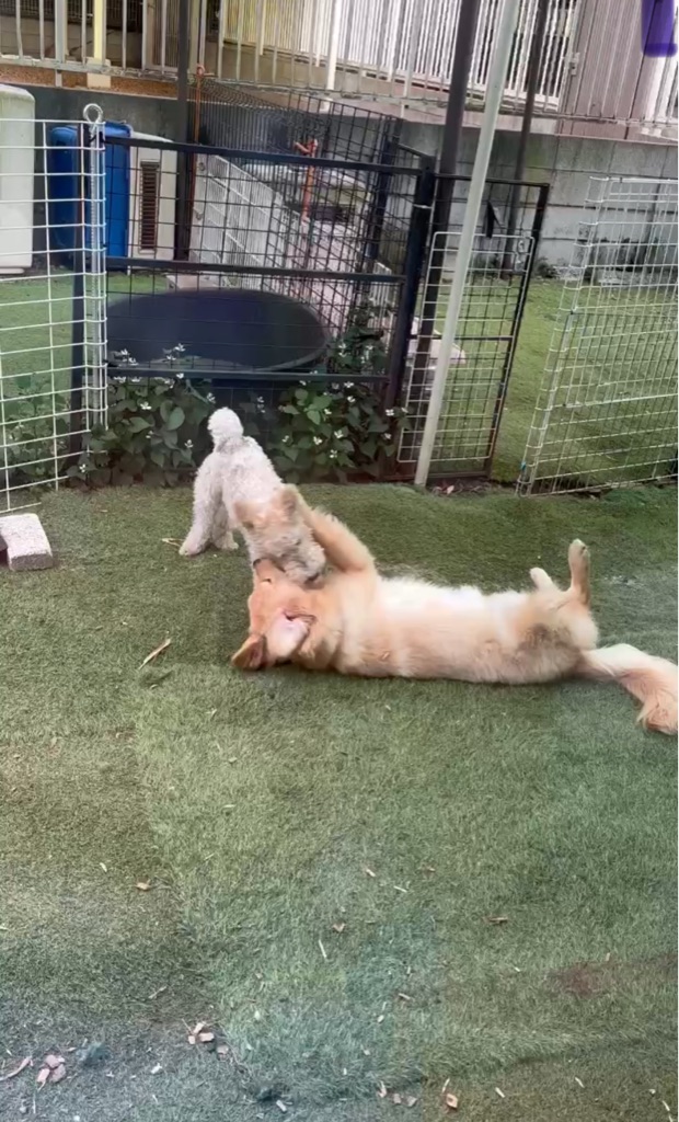 僕だって本当は強いけど、サマンサが子供だから手加減して上げてるんだ👌👌👌🐶