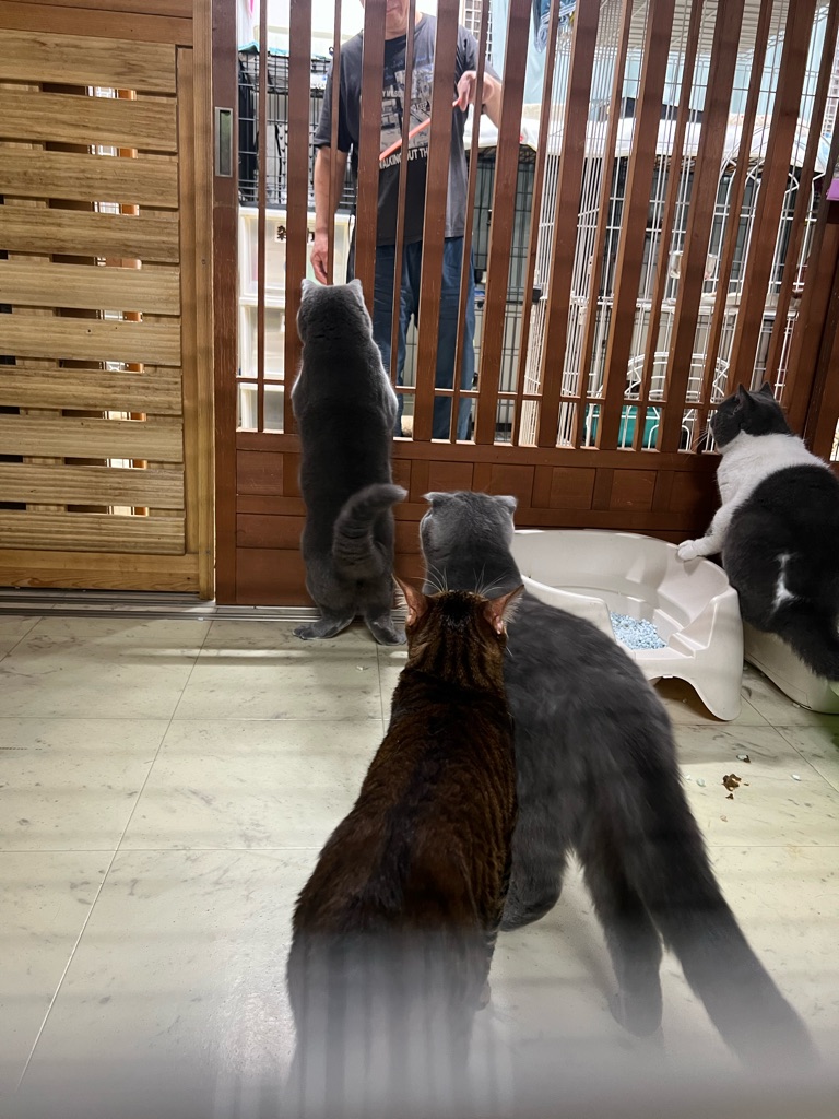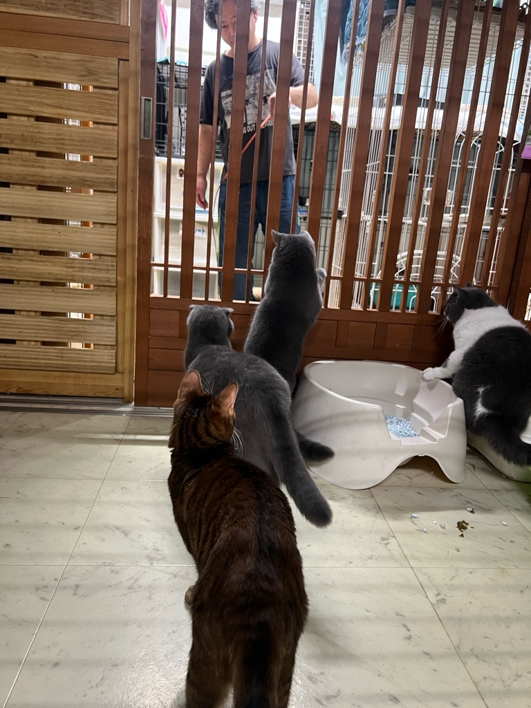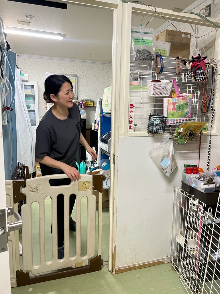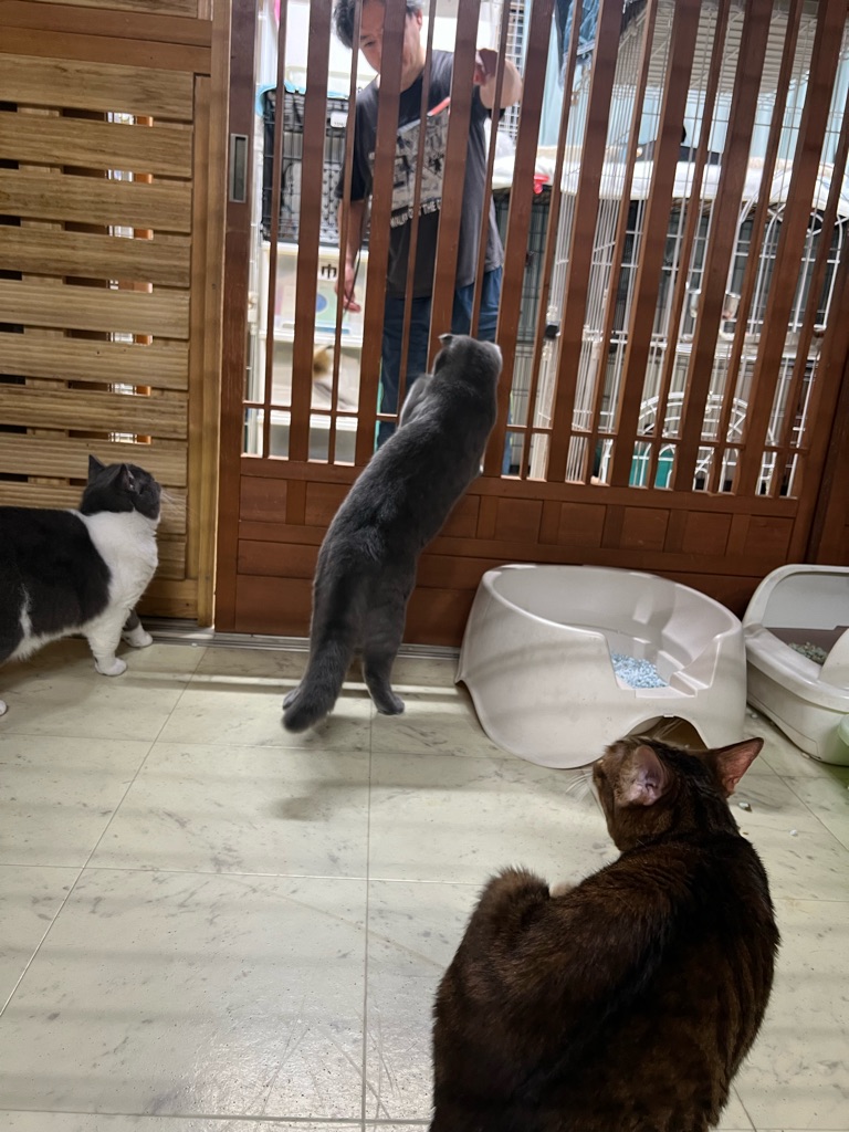 二階の猫部屋ではスタッフさんが