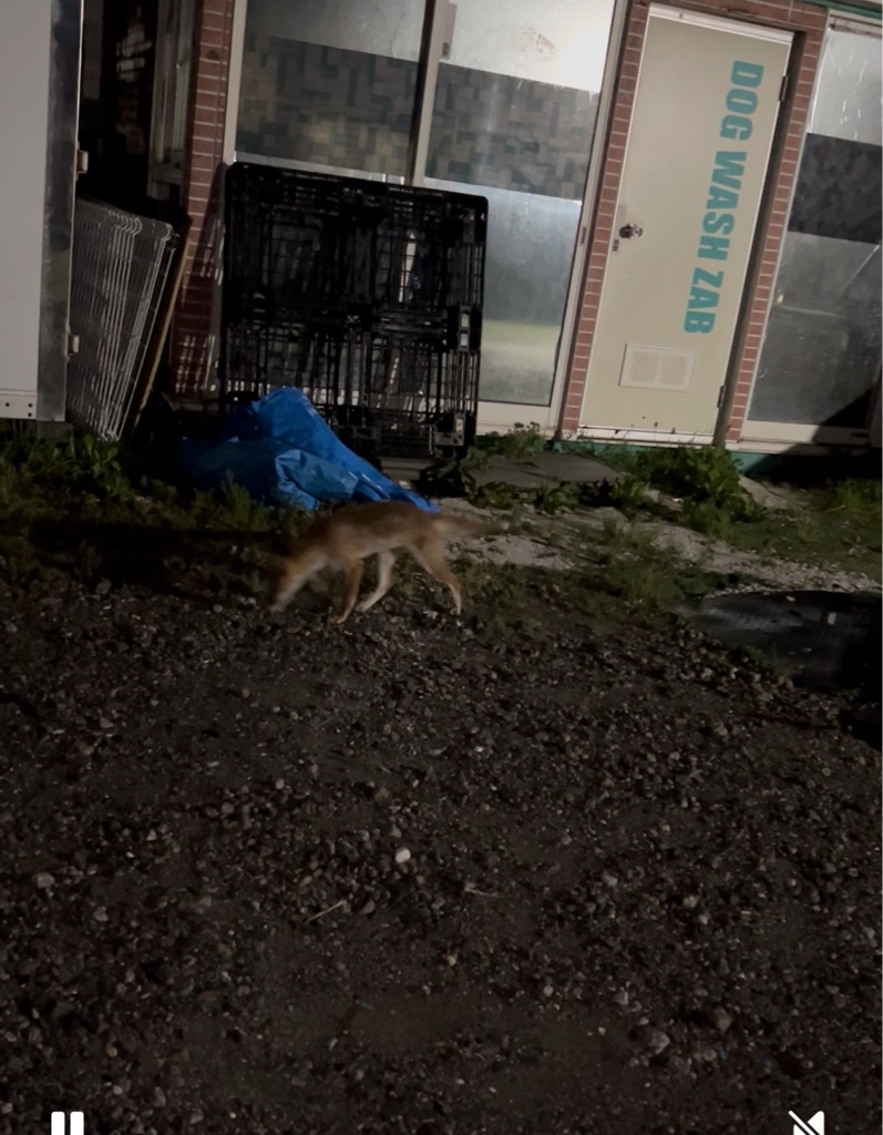 昨夜は満月、 シェルターに子キツネさんが🦊やって来ました。