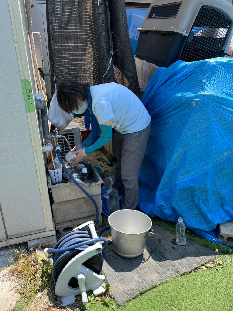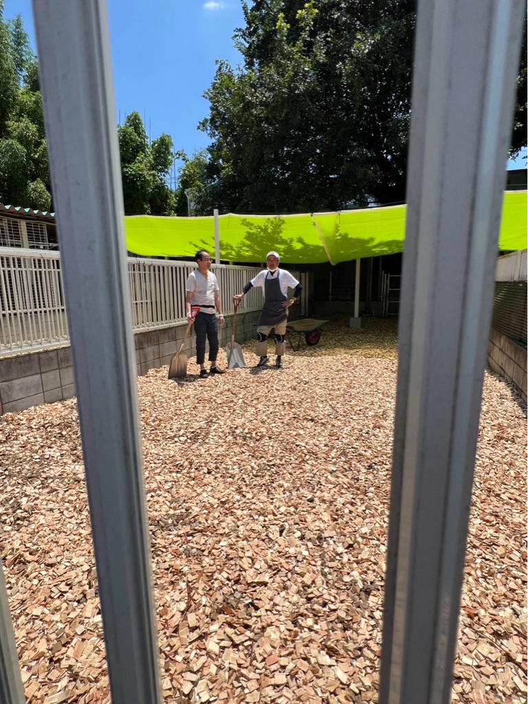 暑い中 ドックランのウッドチップをならしてくださいました