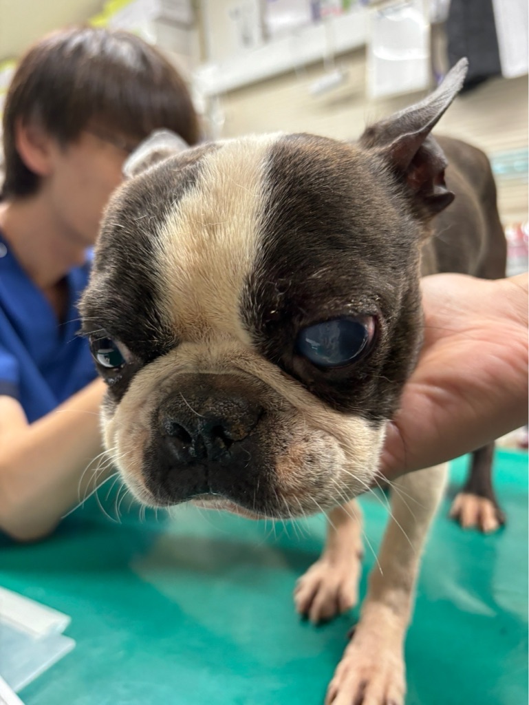 片目が傷ついています。