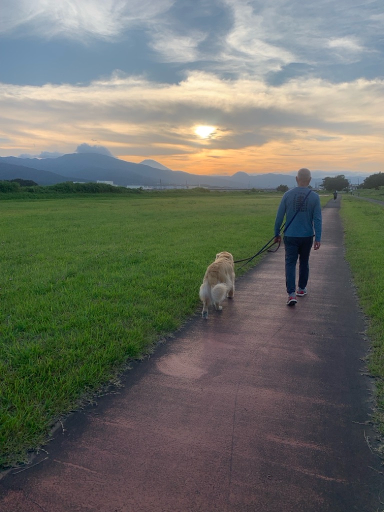 涼しくなったらパパさんとお散歩です。