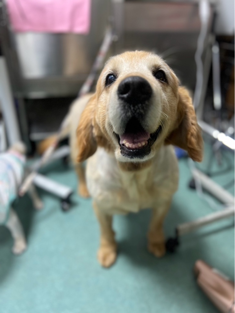 おばちゃんゴールデンのケイトちゃん、すでにニコニコの笑顔です。