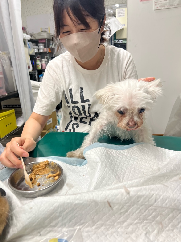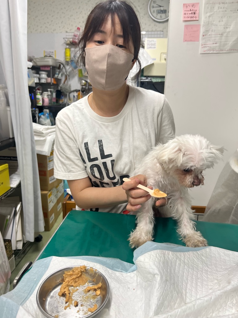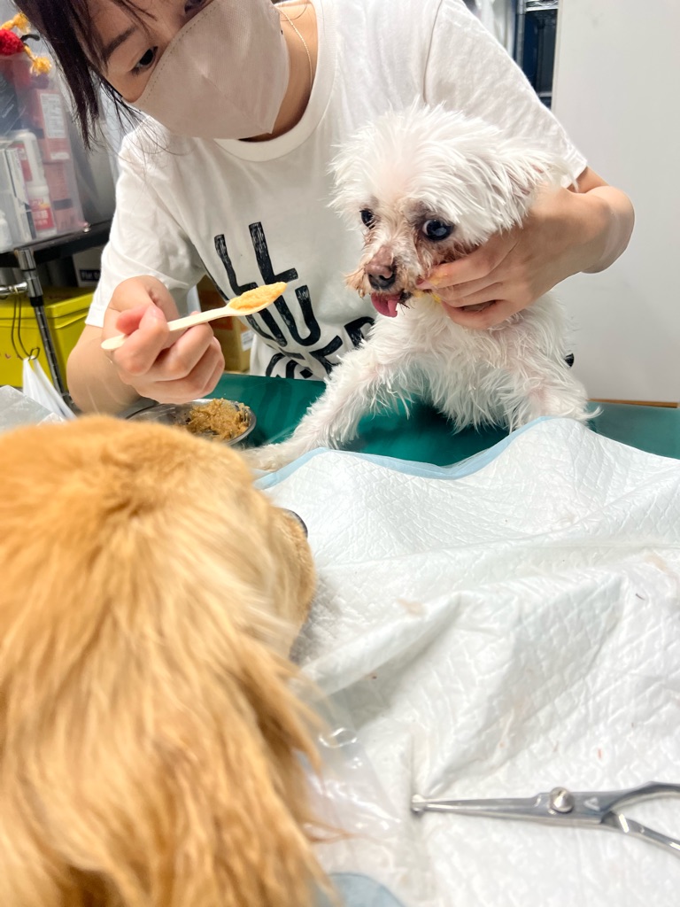 付き添いのサマンサ、親切に残り物を食べてくれます😅💦