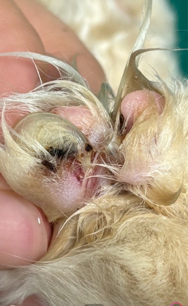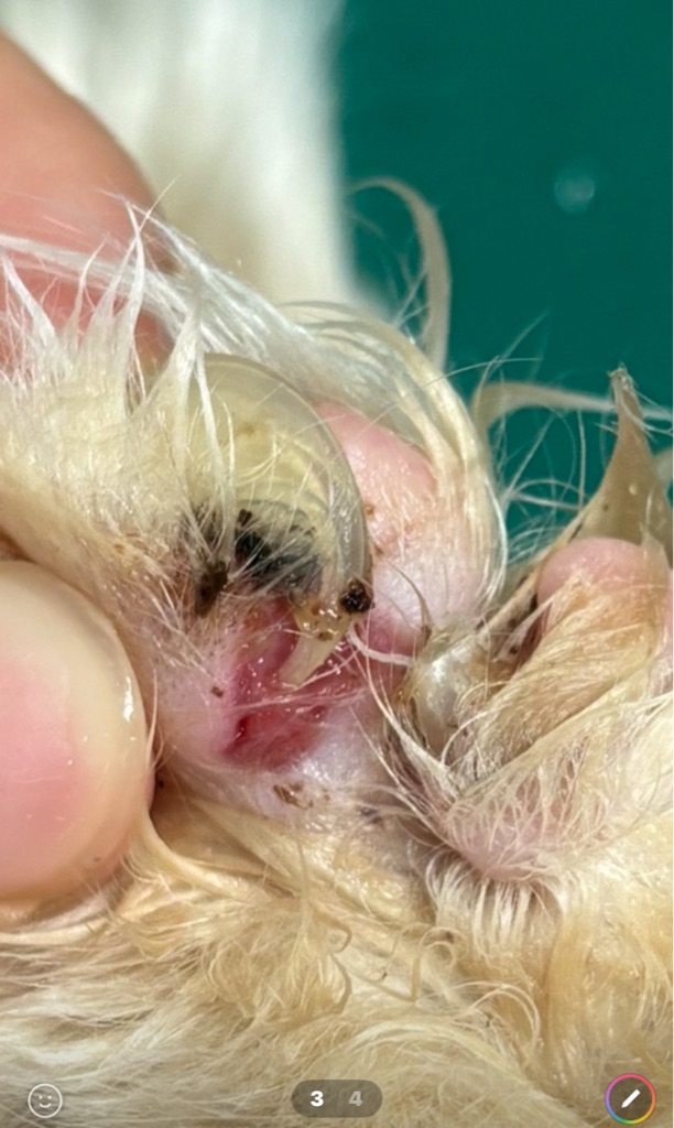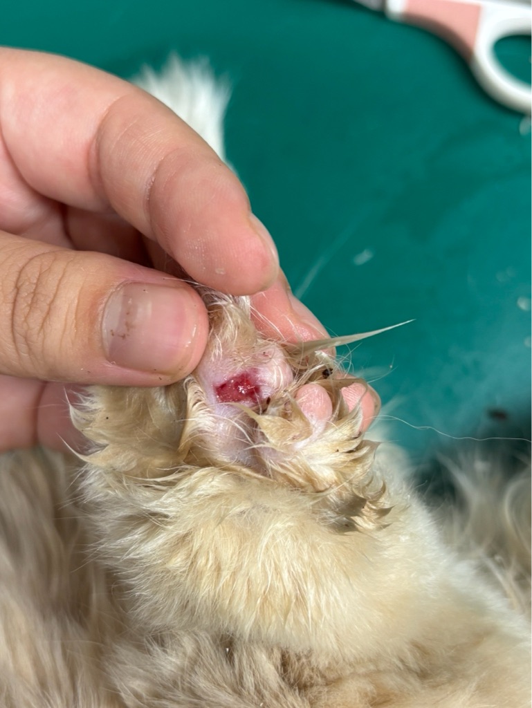 そんな中でまた 爪が肉球に刺さっている子がいました😱💦