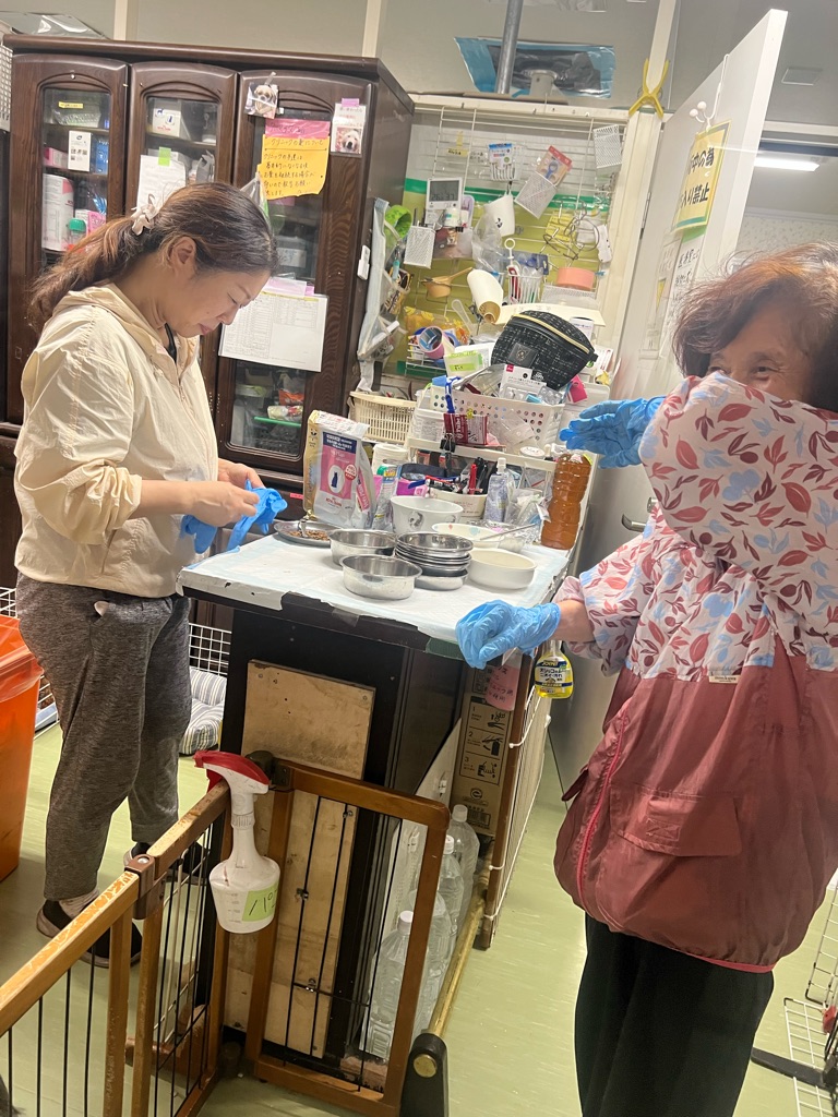 お薬を飲ませたり お掃除したり お皿洗いにゴミ捨て、やる事はいっぱいあります。