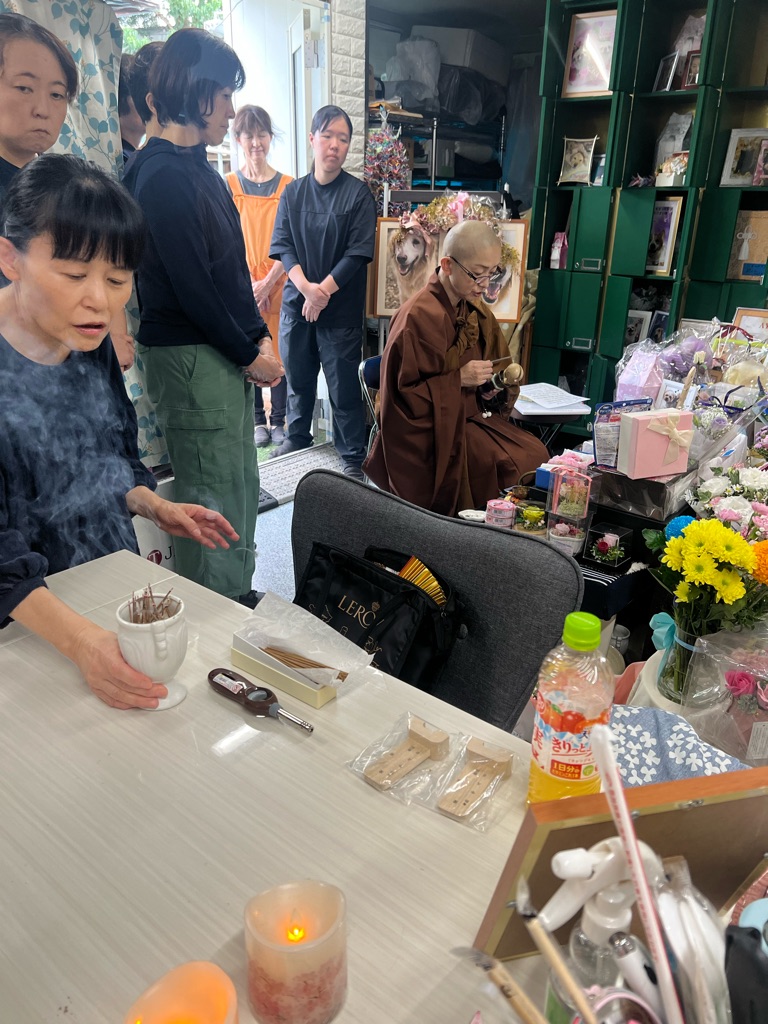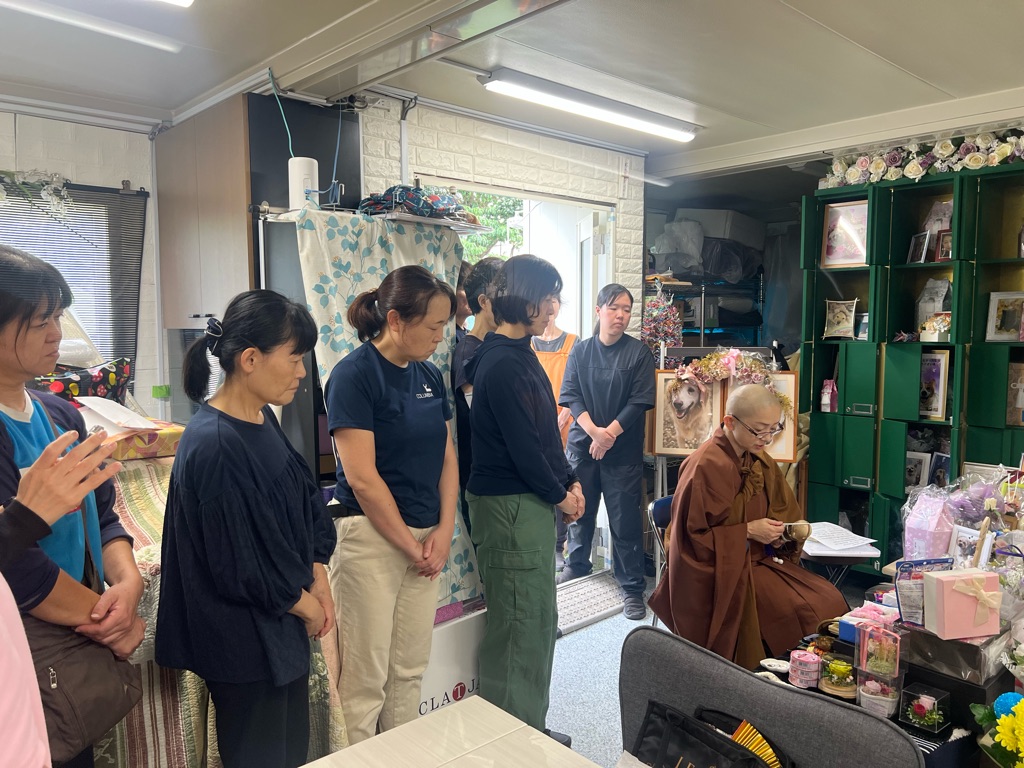 お経を聴きながら涙が止まりません。特に夢ちゃんを預かってくれていたスタッフさんは号泣💦💦