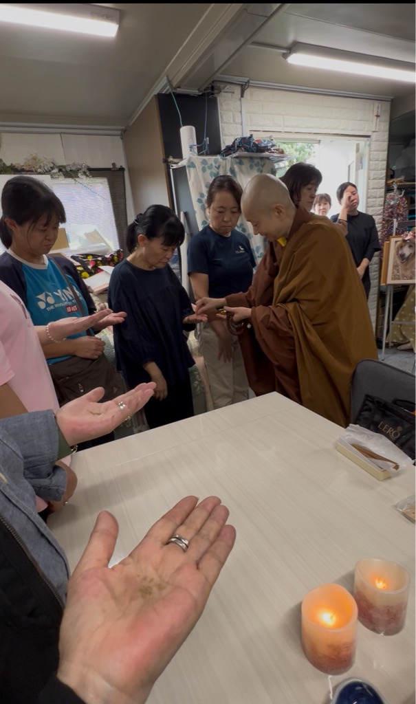 お清めの砂?を皆んなに配って頂き身体の悪いところにつけました。
