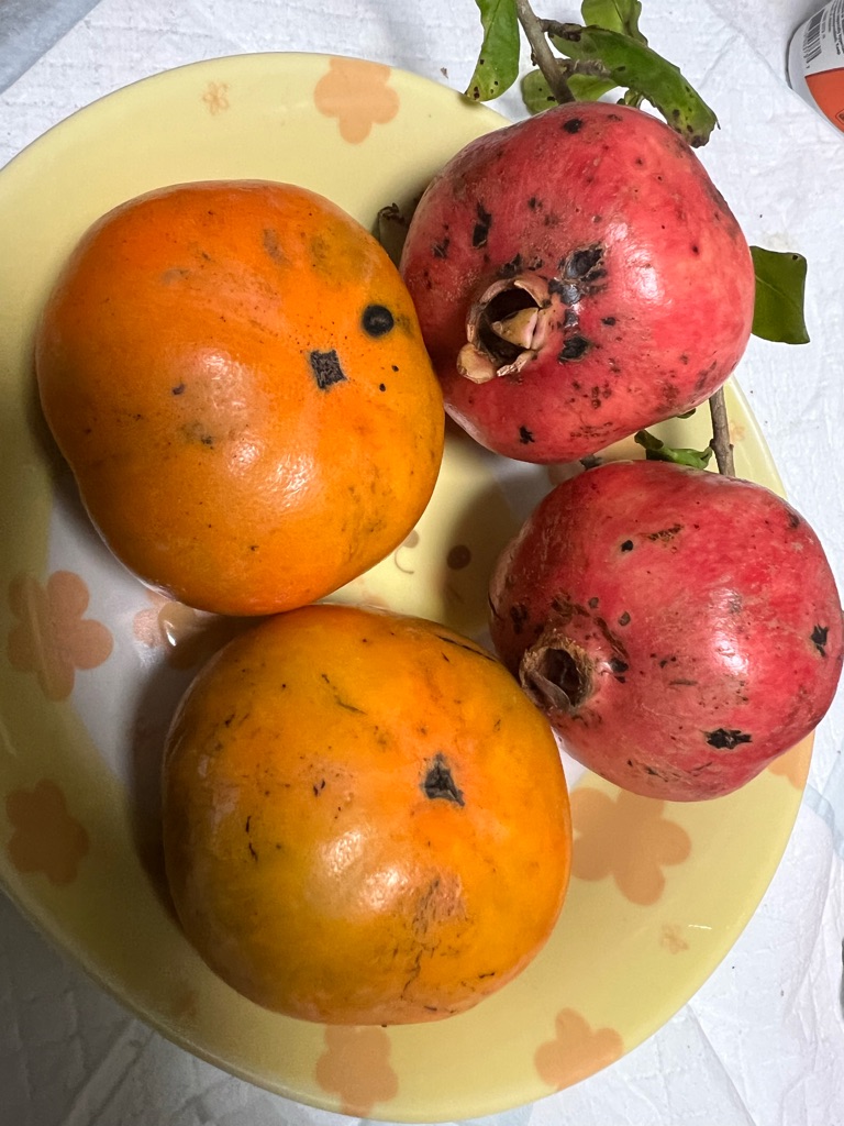 スタッフさんから、庭で採れた柿とザクロを頂きました。