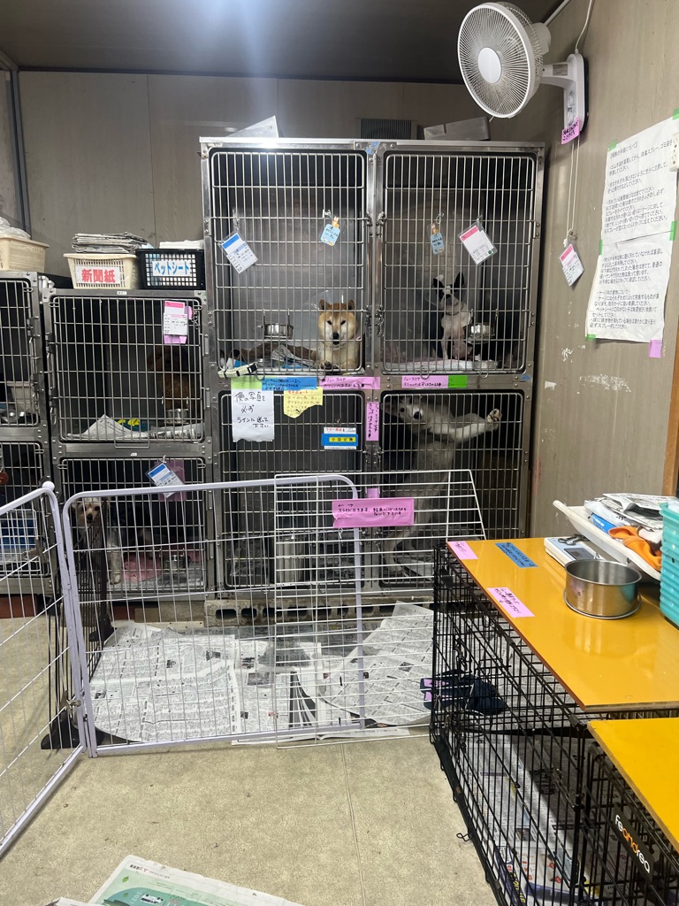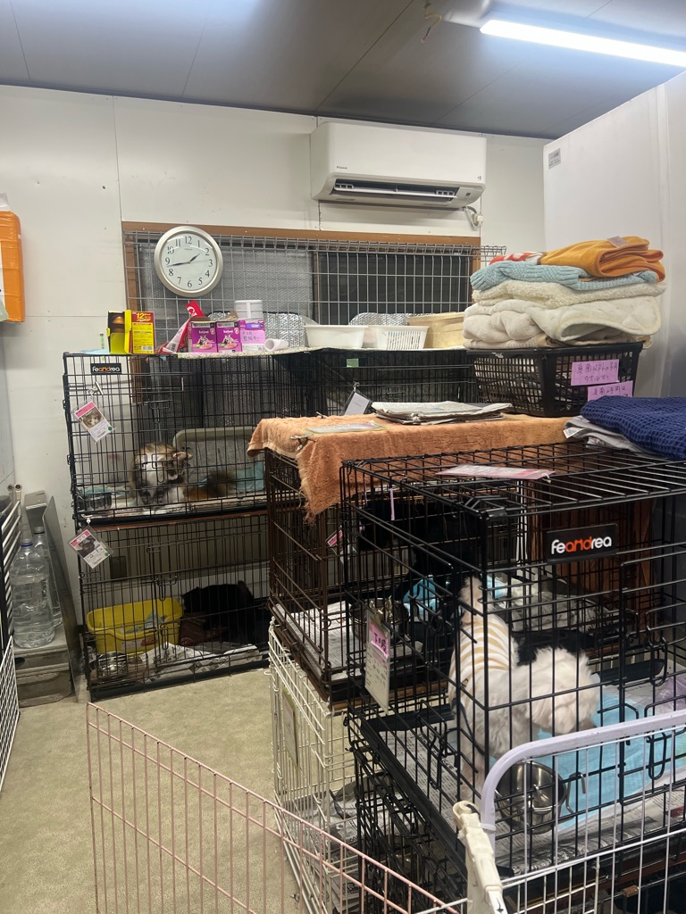 夜遅くでもケージの中でオシッコやウンチをしている子もいますので、身体が汚れない様に新聞紙やペットシーツを取り替えています。