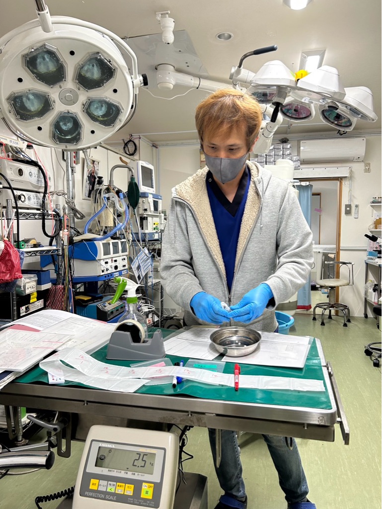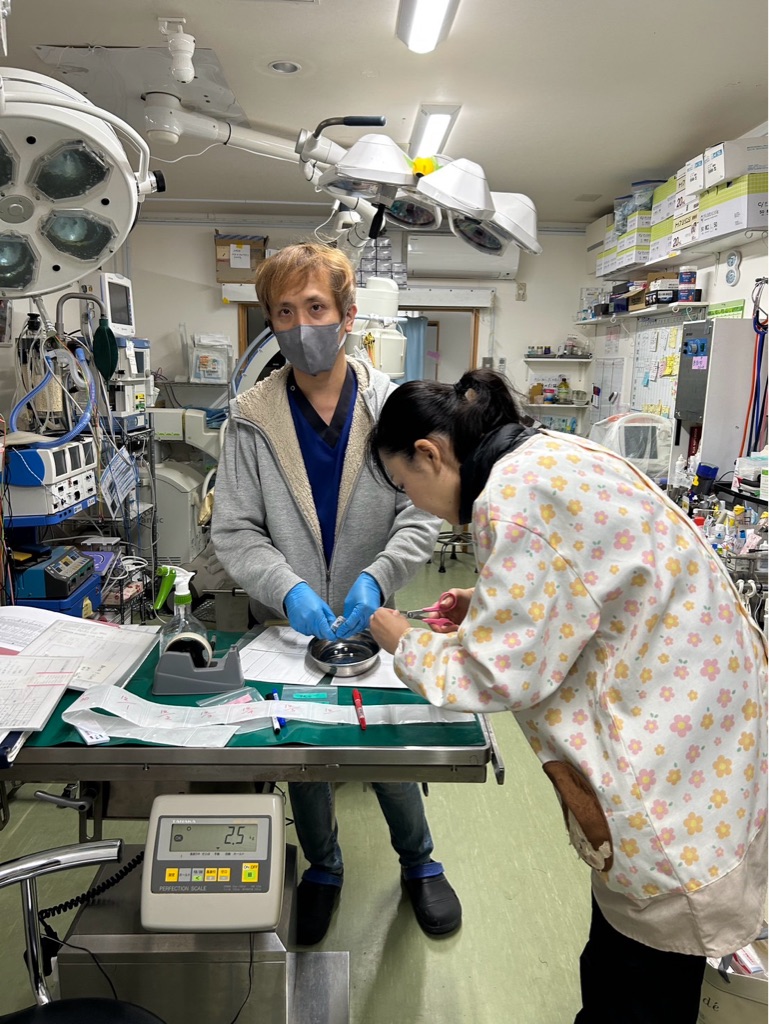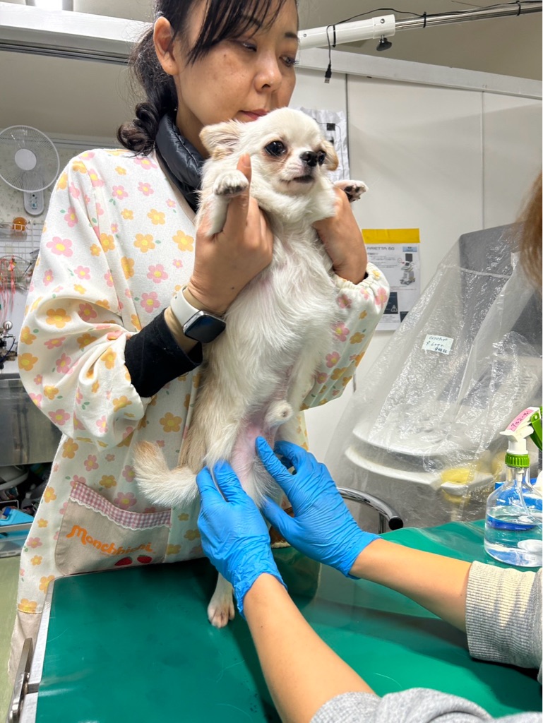 今日は術後の犬猫達の抜糸や