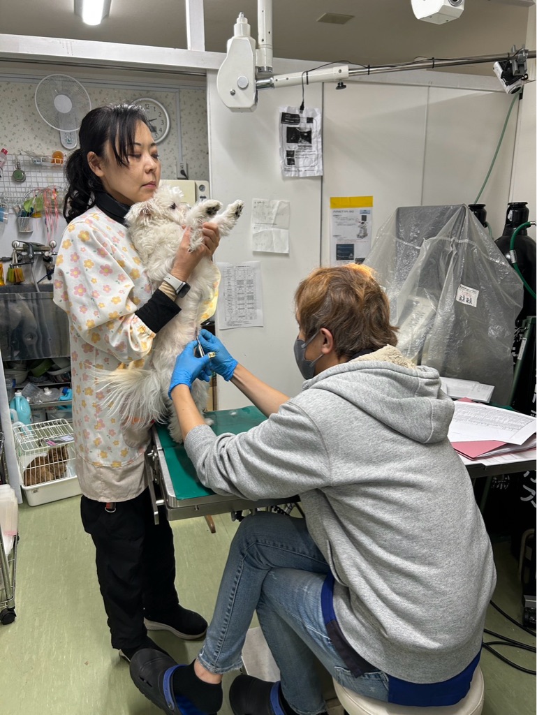 診察、狂犬病接種などです。