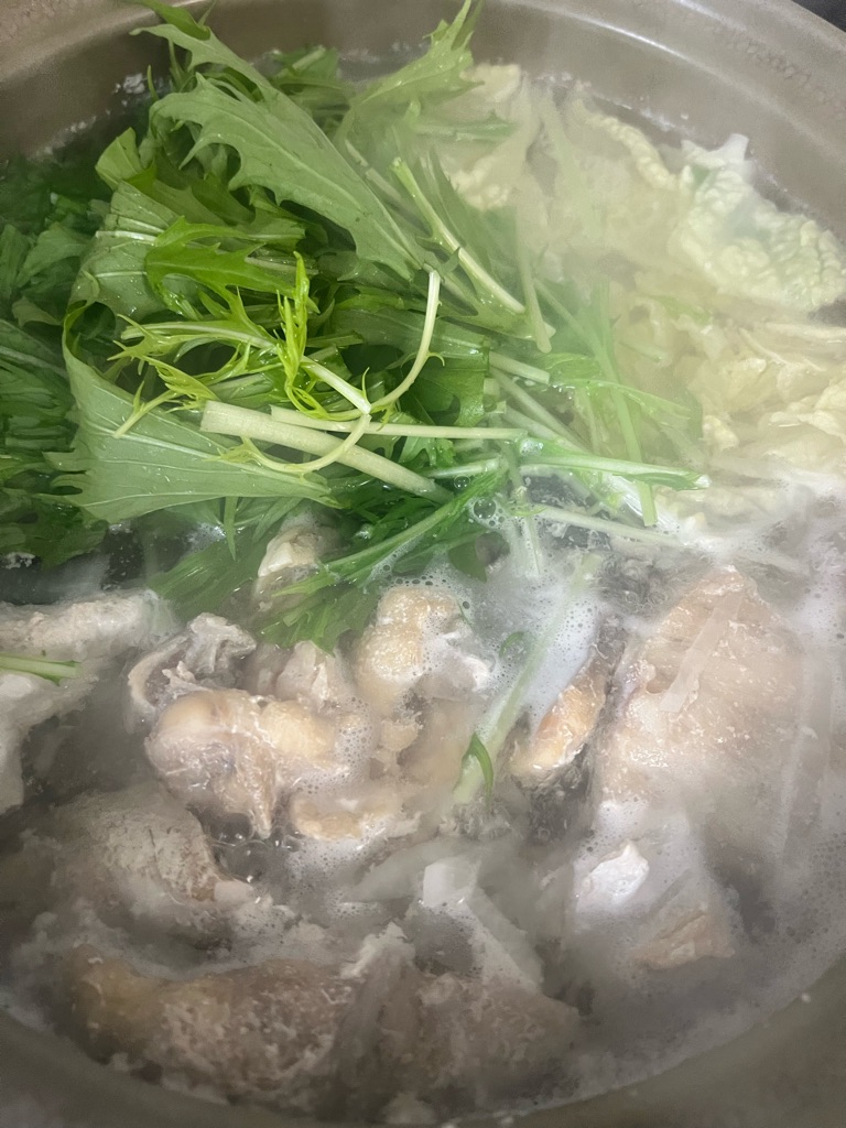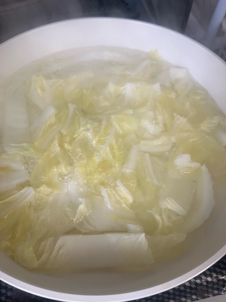 白菜にお魚やひき肉を入れて煮て居ます。