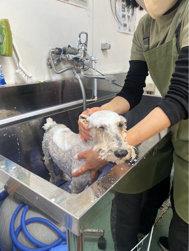 下はトリミングのティファニーちゃん、いつもサマンサによだれだらけにされています。😱💦