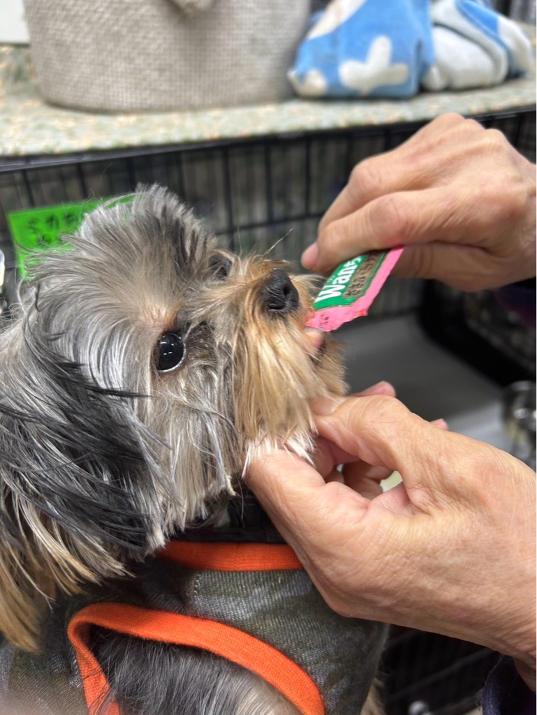 食欲の無い子は 低血糖を防ぐためにチュールを強制給餌したり